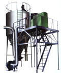 概述: 噴霧干燥是液體工藝成形和干燥工業(yè)中廣泛應(yīng)用的工藝。適用于從溶液、乳液、懸浮液和可塑性糊狀液體原料中生成粉狀、顆粒狀或塊狀固體產(chǎn)品。因此,當(dāng)成品的顆粒大小分布、殘留水份含量、堆積密度和顆粒形狀必須符合精確的標(biāo)準(zhǔn)時(shí)。噴霧干燥是一道合適的工藝。 工作原理: 空氣經(jīng)過濾和加熱,進(jìn)入干燥器頂部空氣分配器,熱空氣呈螺旋狀均勻地進(jìn)入干燥室。料液經(jīng)塔體頂部的高速離心霧化器,(旋轉(zhuǎn))噴霧成細(xì)微的霧狀液珠,與熱空氣并流接觸在短的時(shí)間內(nèi)可干燥為成品。成品連續(xù)地由干燥塔底部和旋風(fēng)分離器中輸出,廢氣由風(fēng)機(jī)排空。 特點(diǎn): ★ 干燥速度快,料液經(jīng)霧化后表面積大大增加,在熱風(fēng)氣流中,瞬間就可蒸發(fā)95%-98%的水份,完成干燥時(shí)間僅需數(shù)秒,特別適用于熱敏性物料的干燥。 ★ 產(chǎn)品具有良好的均勻度、流動(dòng)性和溶解性,產(chǎn)品純度高,質(zhì)量好。 ★ 生產(chǎn)過程簡化,操作控制方便。對于含濕量40—60%(特殊物料可達(dá)90%)的液體能一次干燥成粉粒產(chǎn)品,干燥后不需粉碎和篩選,減少生產(chǎn)工序,提高產(chǎn)品純度。對產(chǎn)品粒徑,松密度,水份,在一定范圍內(nèi)可通過改變操作條件進(jìn)行調(diào)整,控制和管理都方便。
